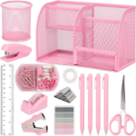 Complete pink desk set with essential stationery like a stapler, tape dispenser, and clips. Perfectly matches your aesthetic. As an Amazon Associate, I earn from qualifying purchases.Loading...